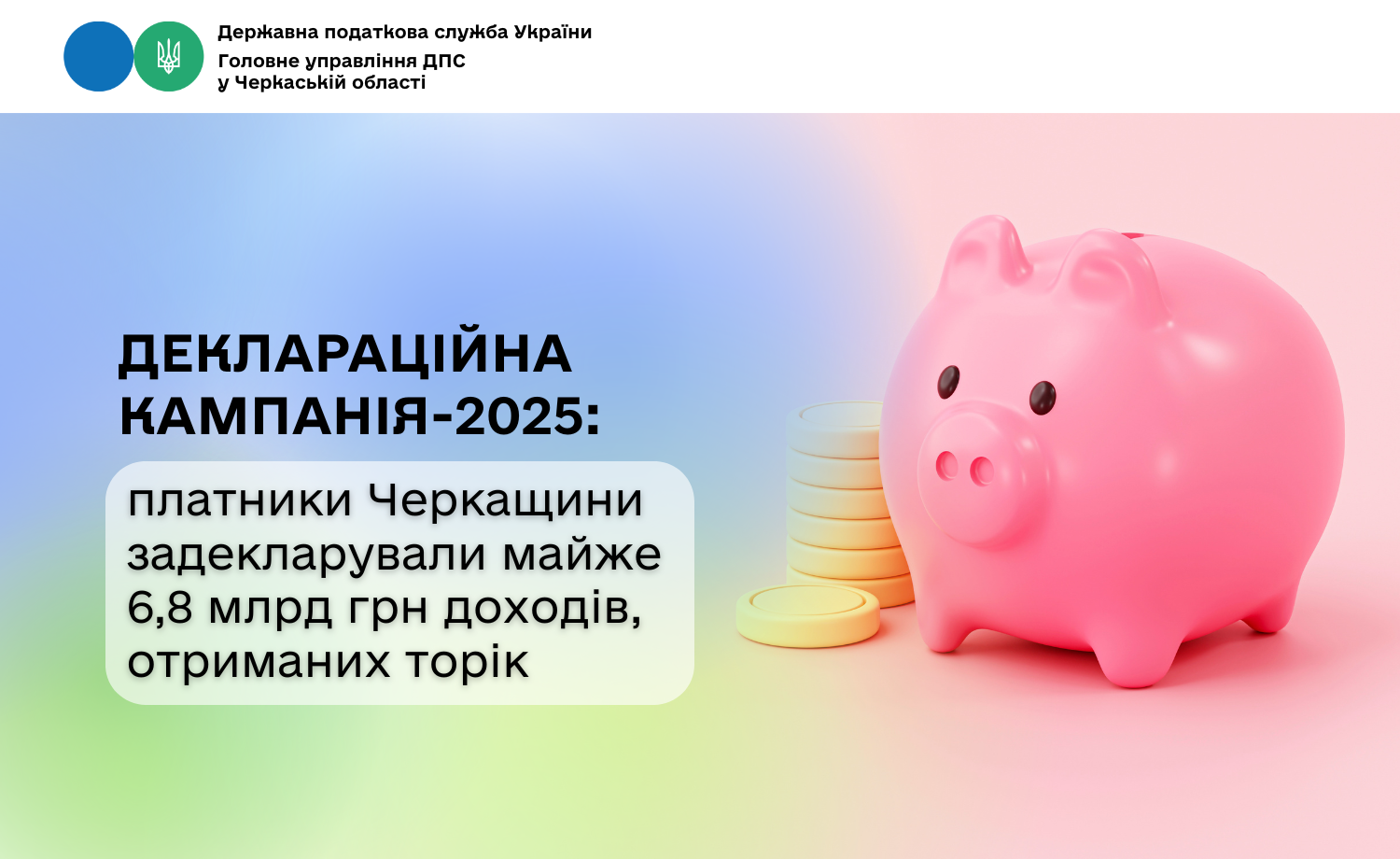 Деклараційна кампанія-2025: платники Черкащини задекларували майже 6,8 млрд грн доходів, отриманих торік