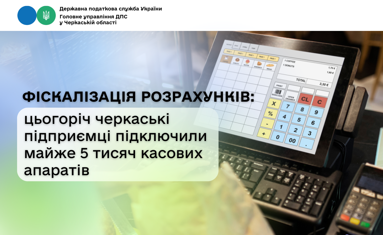 Протягом січня-серпня 2025 року суб'єкти господарювання Черкащини зареєстрували 4 914 одиниць касової техніки.