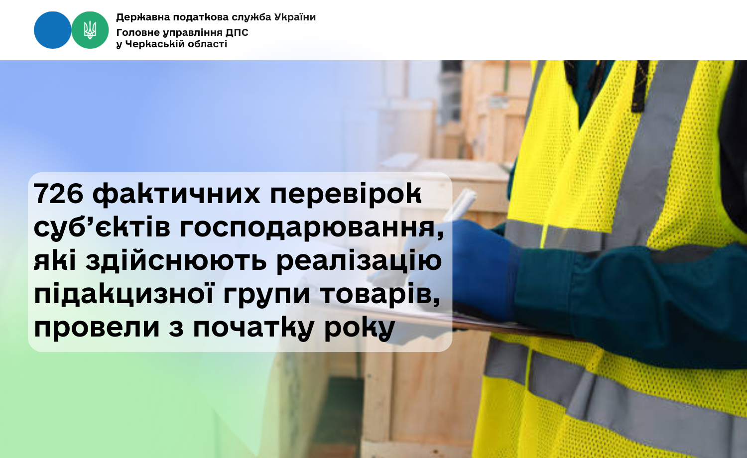 Головним управлінням ДПС у Черкаській області протягом січня-вересня 2025 року проведено 726 фактичних перевірок суб’єктів господарювання, які здійснюють реалізацію підакцизної групи товарів на території Черкаської області. В тому числі, 5 перевірок в рамках проведення спільних заходів з Управлінням стратегічних розслідувань в Черкаській області Національної поліції України та 18 перевірок спільно з Головним управлінням Національної поліції в Черкаській області.