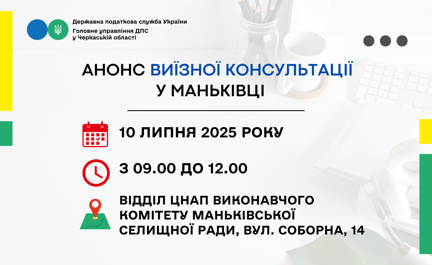 10 липня 2025 року працівники Уманської державної податкової інспекції завітають до Маньківської селищної територіальної громади. Це чудова нагода для представників бізнесу та всіх громадян отримати відповіді на свої запитання безпосередньо на місці.
