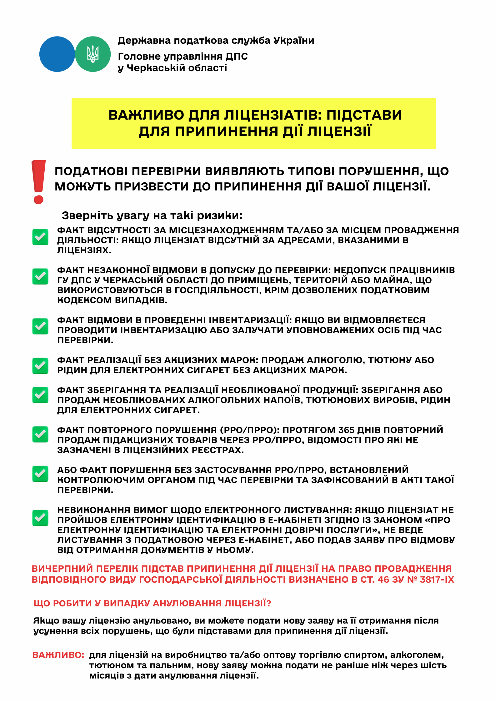 Важливо для ліцензіатів: підстави для припинення дії ліцензії (ПАМ’ЯТКА)