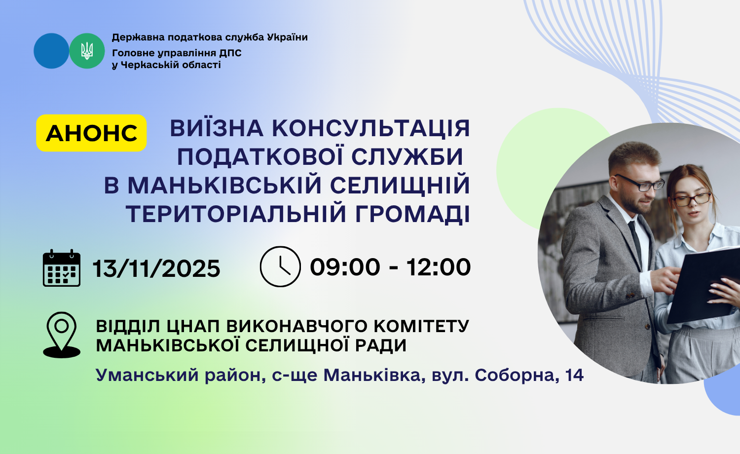 13 листопада 2025 року працівники Уманської державної податкової інспекції проведуть виїзну консультацію безпосередньо у Маньківській селищній громаді.