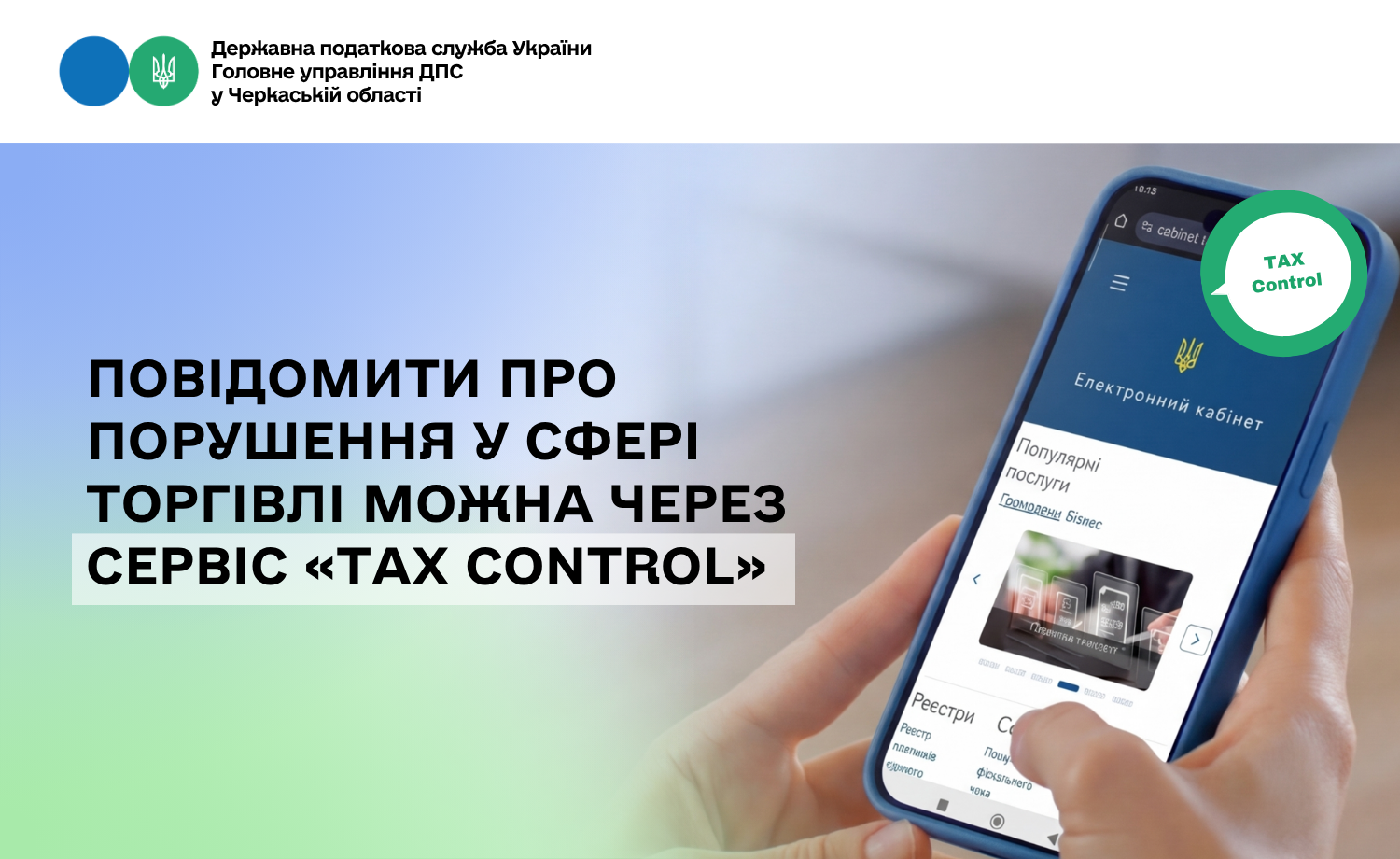 Головне управління ДПС у Черкаській області нагадує громадянам про можливість оперативно інформувати податкову службу про порушення у сфері торгівлі, послуг та громадського харчування за допомогою цифрового сервісу «TAX Control».