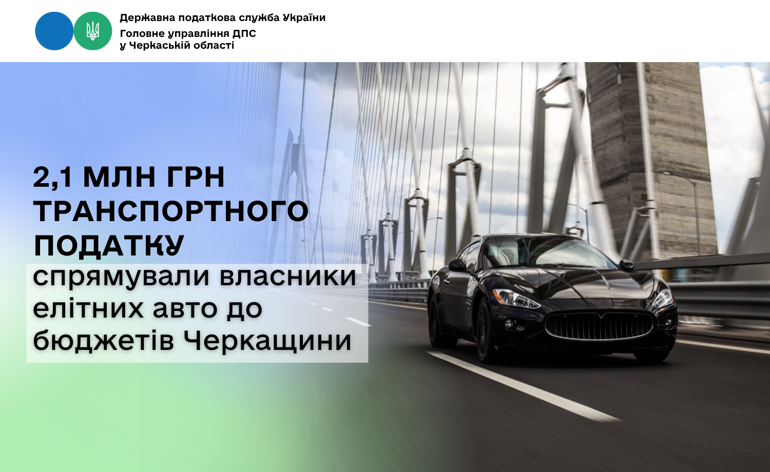 Протягом 3 місяців 2026 року власники елітних автівок сплатили до місцевих бюджетів Черкащини 2,1 млн грн транспортного податку.