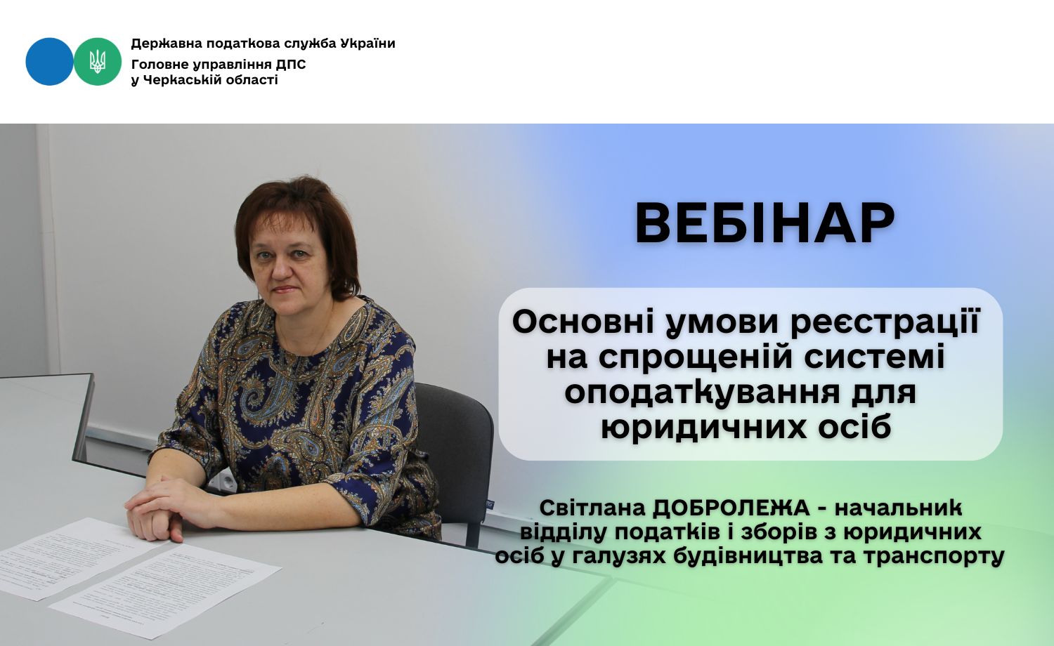 Юридична особа може самостійно обрати спрощену систему оподаткування та зареєструватися платником єдиного податку третьої групи – відповідно до норм Податкового кодексу України за умови дотримання вимог. На цьому зауважила під час вебінара на ютуб-каналі «Допомога платнику» начальниця відділу податків і зборів з юридичних осіб у галузях будівництва та транспорту управління оподаткування юридичних осіб Світлана Добролежа.
