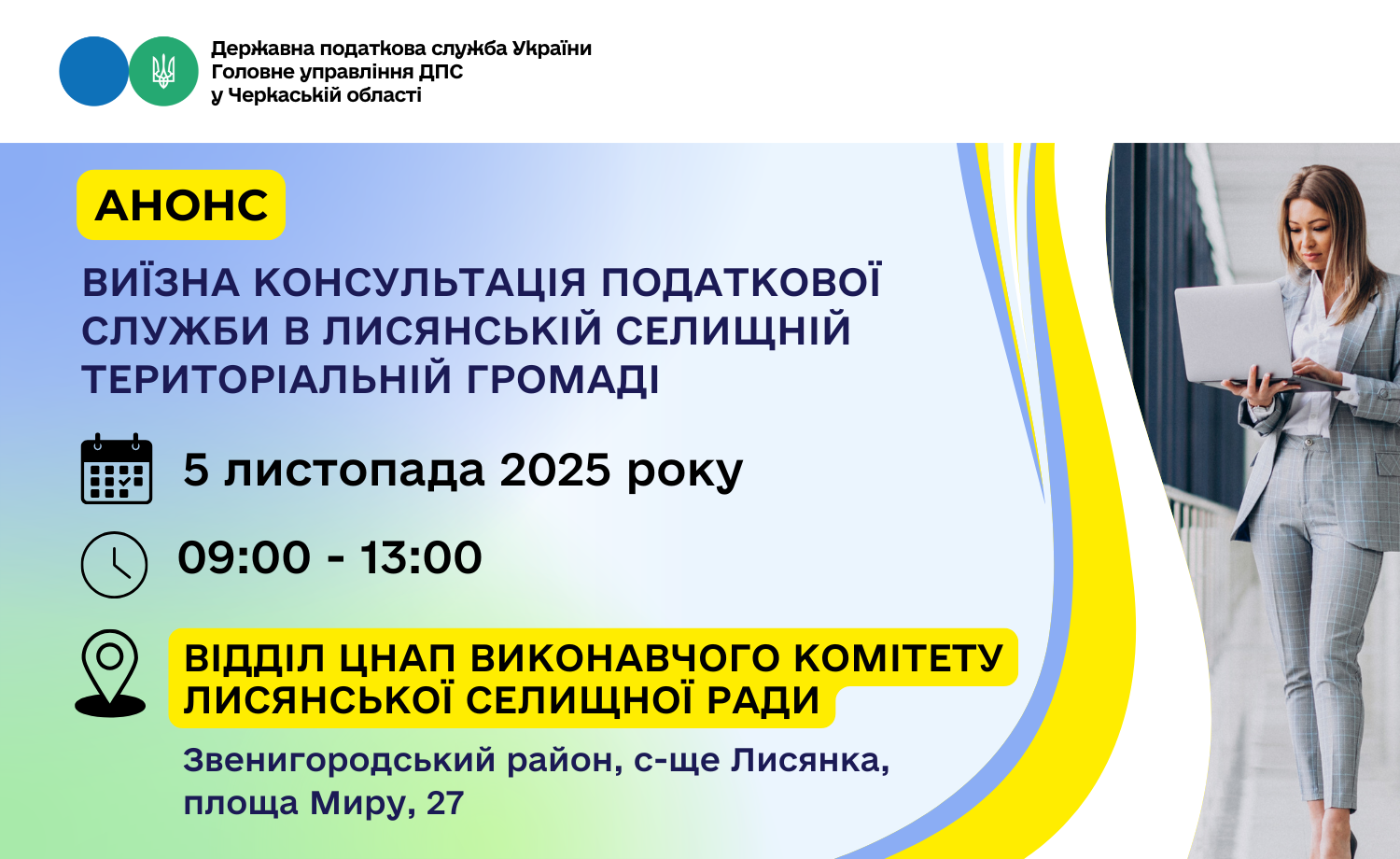 Анонс: 5 листопада – виїзна консультація податкової служби в Лисянській громаді