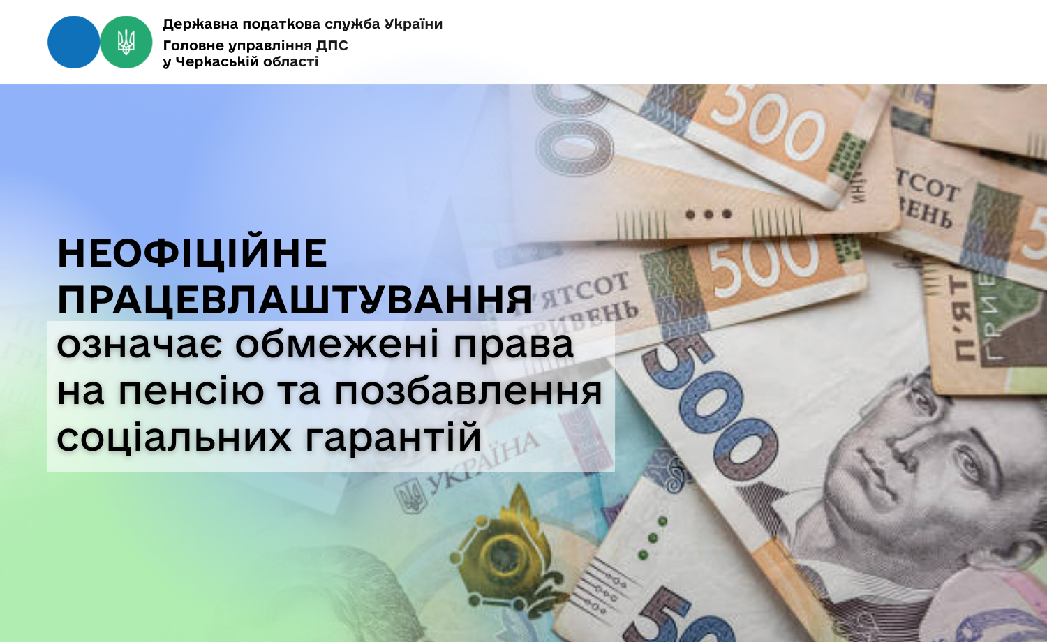 Головне управління ДПС у Черкаській області наголошує, що використання незадекларованої праці–порушення не тільки трудового, а також податкового законодавства.