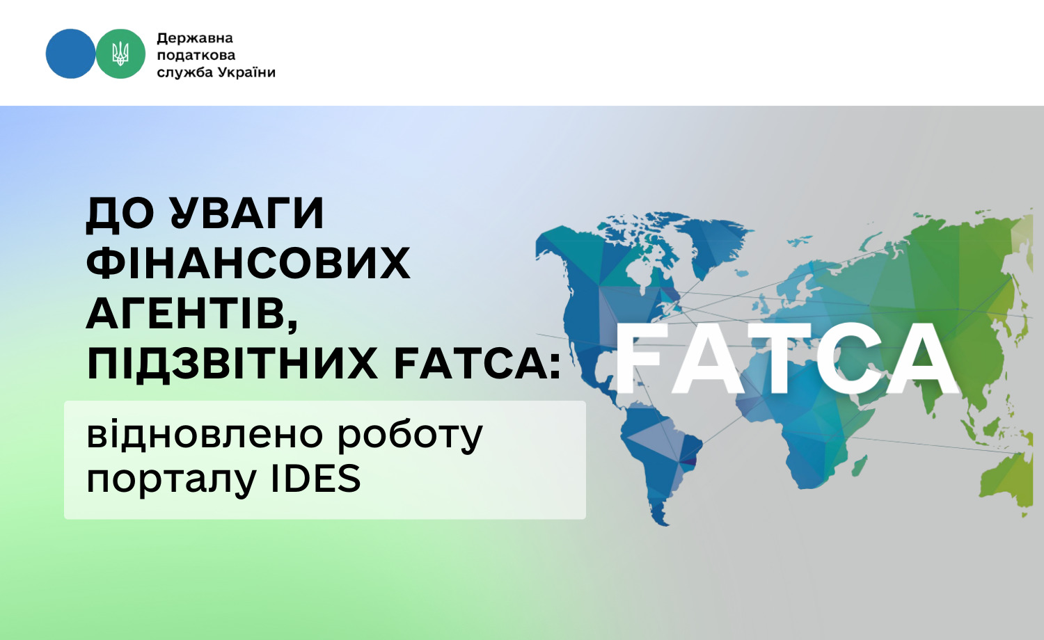 До уваги фінансових агентів, підзвітних FATCA: відновлено роботу порталу IDES
