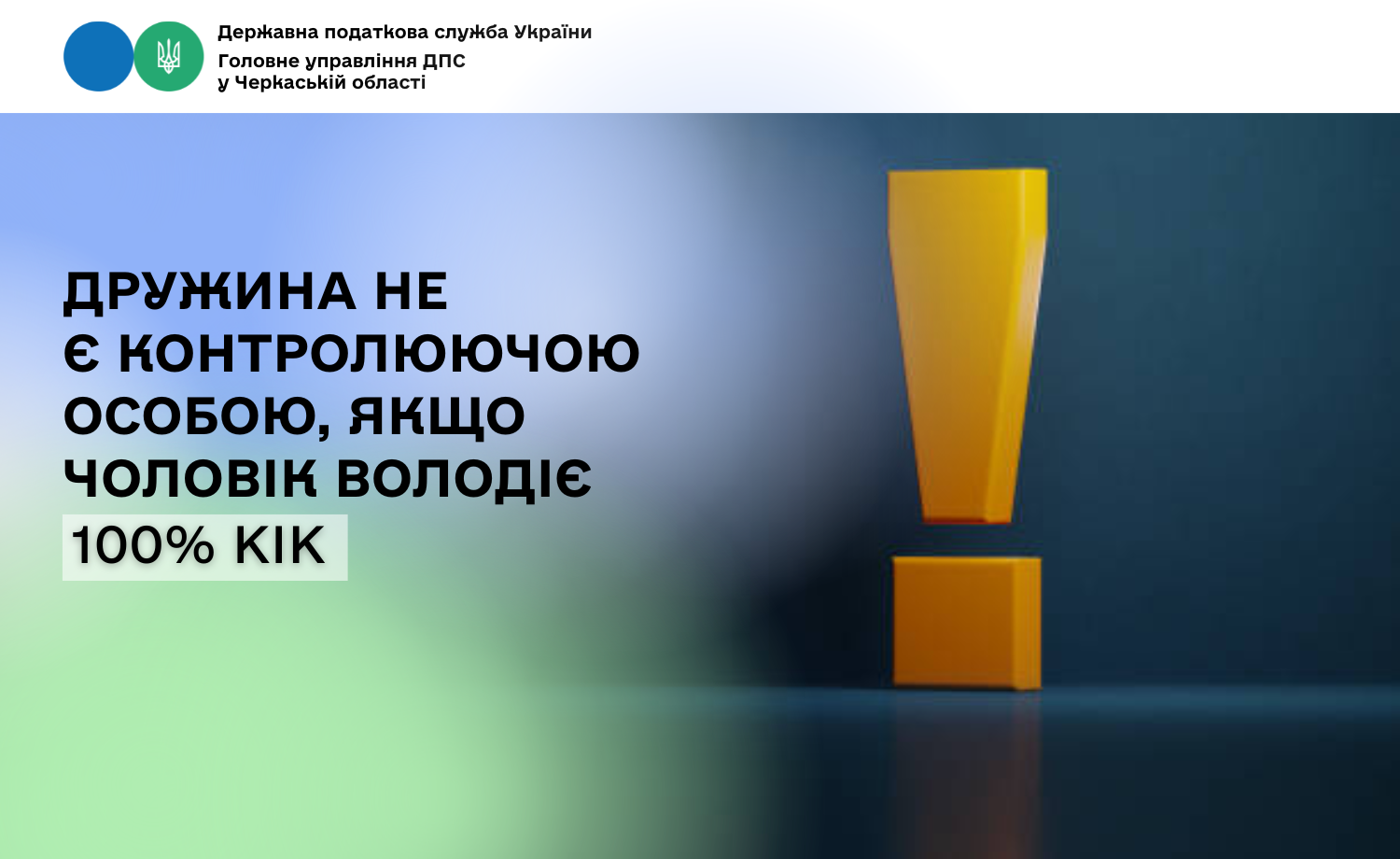 Дружина не є контролюючою особою, якщо чоловік володіє 100% КІК