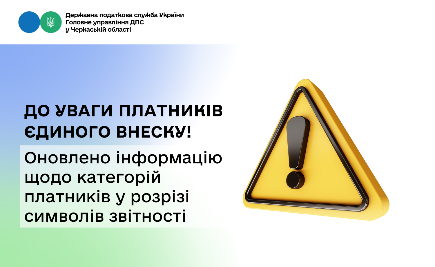 Із метою уточнення символів звітності, за якими необхідно сплачувати єдиний внесок, відповідно до чинної редакції постанови Кабінету Міністрів України від 26 листопада 2014 р. № 675 «Про затвердження пропорцій розподілу єдиного внеску на загальнообов’язкове державне соціальне страхування» та з урахуванням наказу Державної казначейської служби України від 08.12.2025 № 301 «Про внесення змін до Довідника відповідності символу звітності пропорціям розподілу єдиного внеску на загальнообов’язкове державне соціальне страхування» у «Реквізитах рахунків для сплати єдиного внеску на загальнообов’язкове державне соціальне страхування» оновлено інформацію щодо категорій платників єдиного внеску в розрізі символів звітності.
