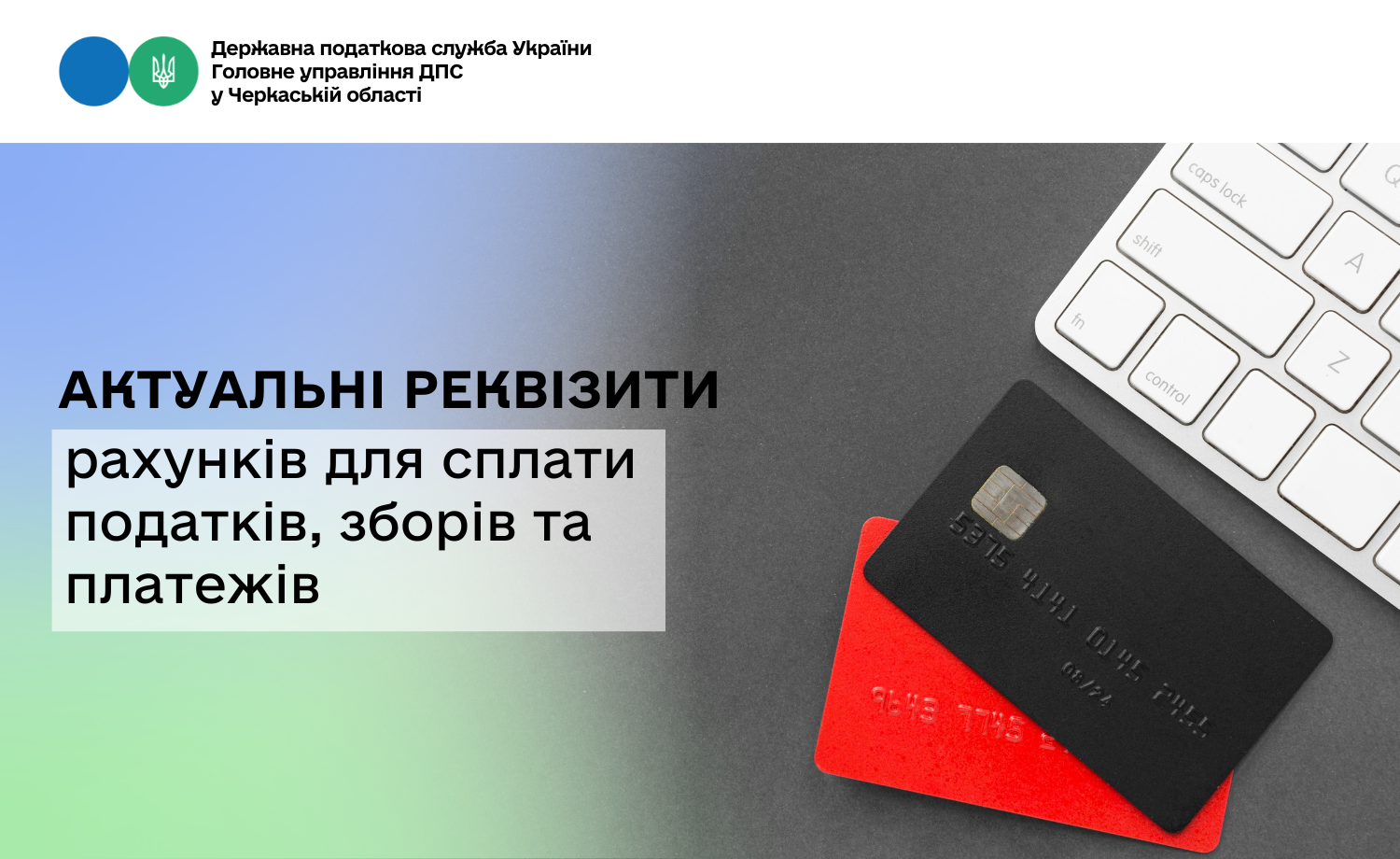 Головне управління ДПС у Черкаській області звертає увагу платників, що на субсайті Головного управління ДПС у Черкаській  області в розділі «Рахунки для сплати платежів» розміщені актуальні: