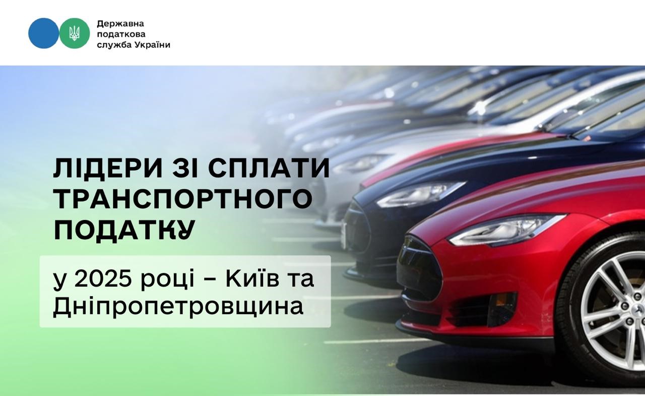 Лідери зі сплати транспортного податку у 2025 році – Київ та Дніпропетровщина