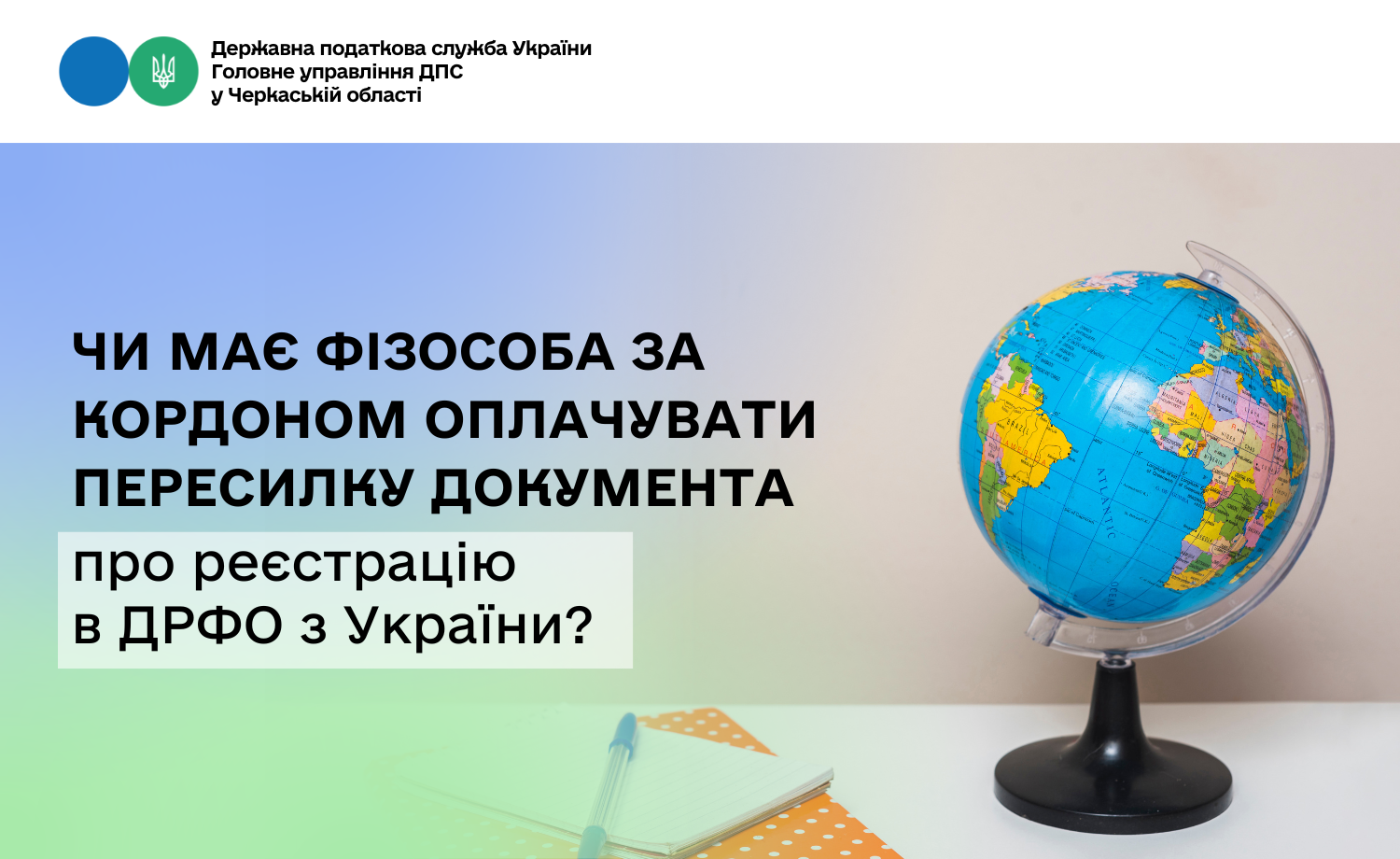 Громадяни України, які проживають або перебувають за кордоном та не можуть прибути до відповідного контролюючого органу в Україні, у разі необхідності реєстрації / внесення змін до ДРФО та/або отримання документа, що засвідчує реєстрацію фізичних осіб у ДРФО, можуть надіслати поштою на адресу Державної податкової служби України (м. Київ, Львівська площа, 8) облікову картку фізичної особи – платника податків за формою № 1ДР (далі – Облікова картка за ф. № 1ДР) / заяву про внесення змін до ДРФО за формою № 5ДР (далі – Заява за ф. № 5ДР) та ксерокопію з чітким зображенням документа, що посвідчує особу. Підпис фізичної особи на Обліковій картці за ф. № 1ДР / Заяві за ф. 5ДР повинен бути засвідчений у встановленому законодавством порядку (п. 7 розд. ІII Положення № 822).