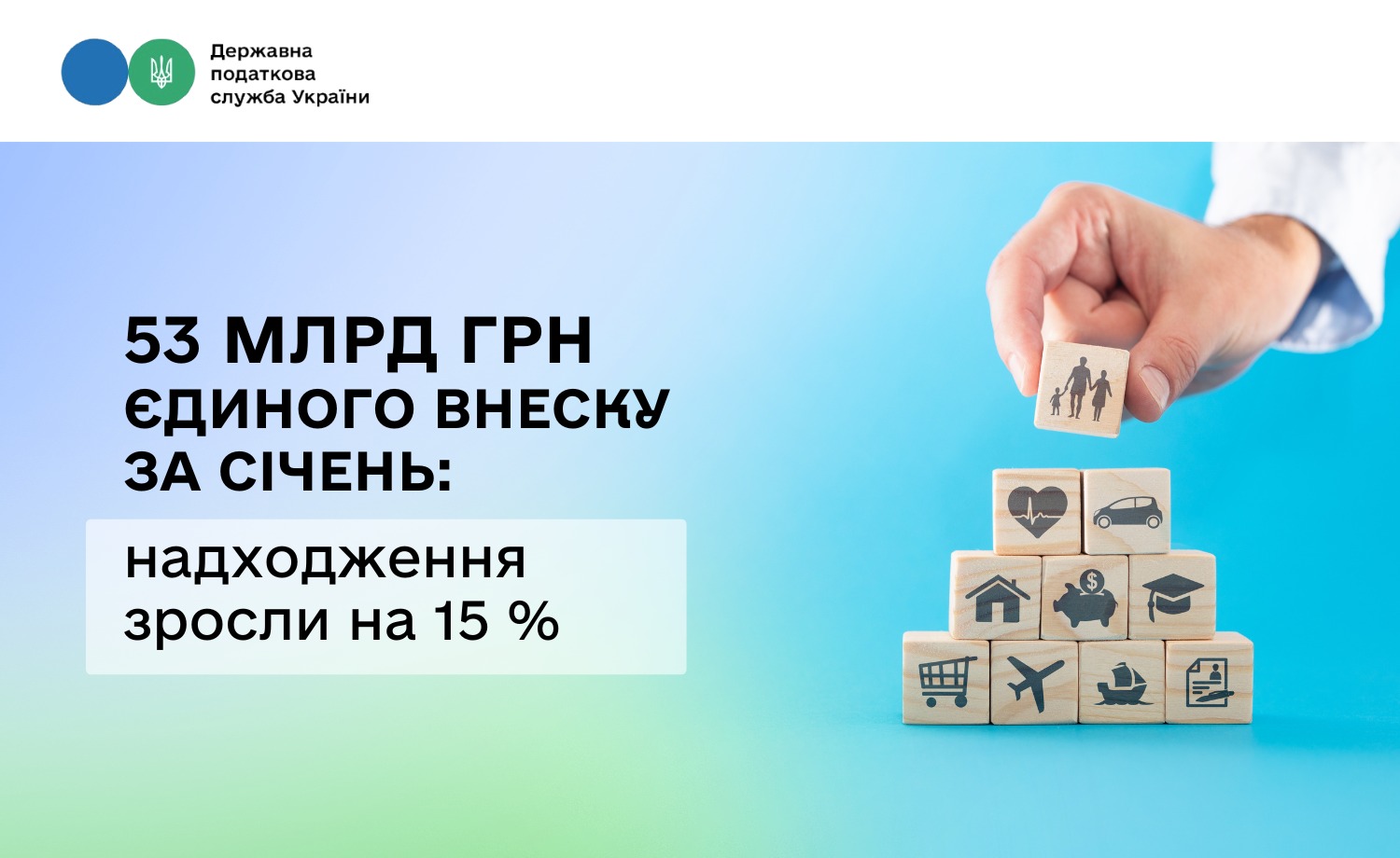 Порівняно з січнем минулого року це на 15 % більше. Додатково надійшло 6,9 млрд гривень.
