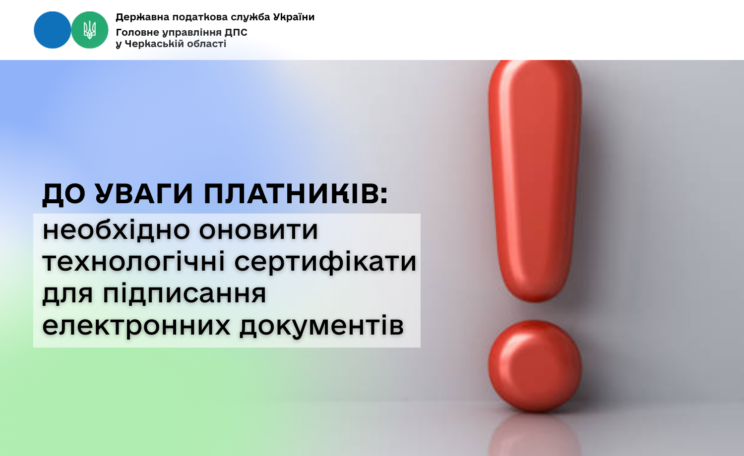 До уваги платників: необхідно оновити технологічні сертифікати для підписання електронних документів