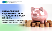 Надходження від фізичних осіб Черкащини зросли на 16,2%: до бюджету сплачено понад 10,5 млрд грн