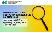 Мобілізація, декрет, відпустка для догляду за дитиною: чи платить ФОП на єдиному податку ЄСВ з 01.10.2025? (ЗУ № 4536-ІХ)