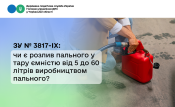 ЗУ № 3817-IX: чи є розлив пального у тару ємністю від 5 до 60 літрів виробництвом пального?