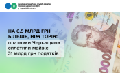 Протягом 10 місяців цього року платники Черкаської області сплатили до бюджетів усіх рівнів 30,8 млрд грн податків, зборів та платежів.