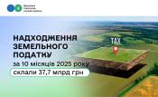 Загалом за 10 місяців місцеві бюджети поповнилися на 37,7 млрд грн плати за землю. Порівняно з минулим роком надходження земельного податку зросли на 15,3 %, або на 5 млрд грн.