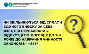 Чи звільняється від сплати єдиного внеску за себе ФОП, яка до дати набрання чинності ЗУ від 05 листопада 2025 року № 4681-IX перебувала у відпустці по догляду за дитиною до досягнення нею трирічного віку?