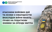До переліку осіб, які можуть скористатися податковою знижкою у зв’язку із витратами на плату за договором оренди житла (квартири або будинку), додано учасників бойових дій та осіб з інвалідністю внаслідок війни.