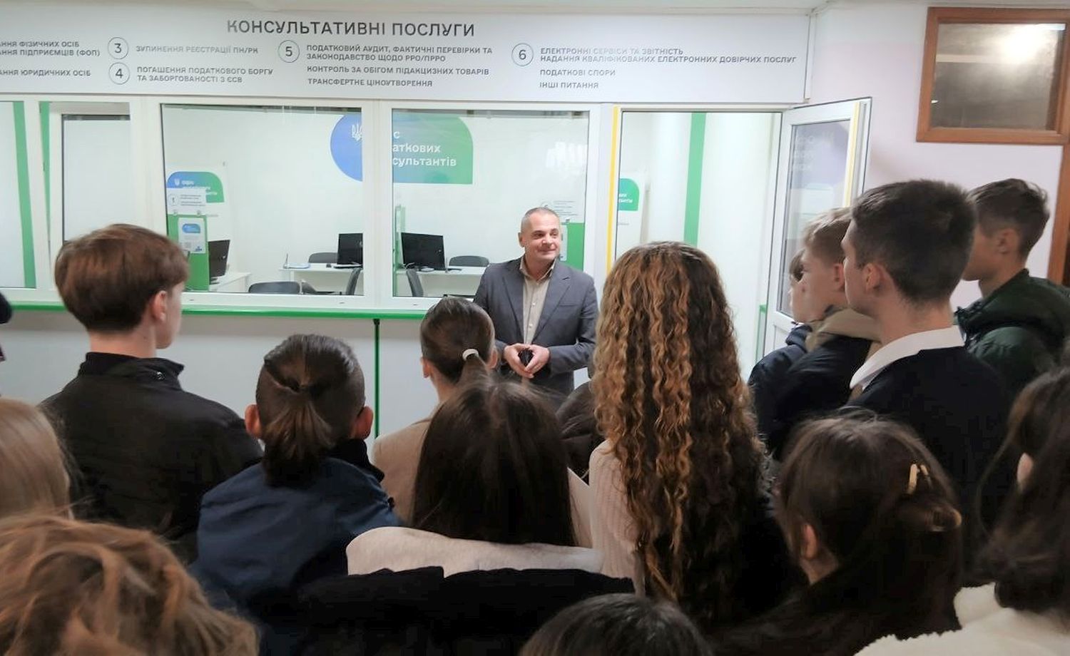 Під час екскурсії Центром обслуговування платників школярі ознайомилися з електронними сервісами ДПС та принципами надання адміністративних послуг. Крім того, гості мали змогу побачити в дії новий сервіс – Офіс податкових консультантів.