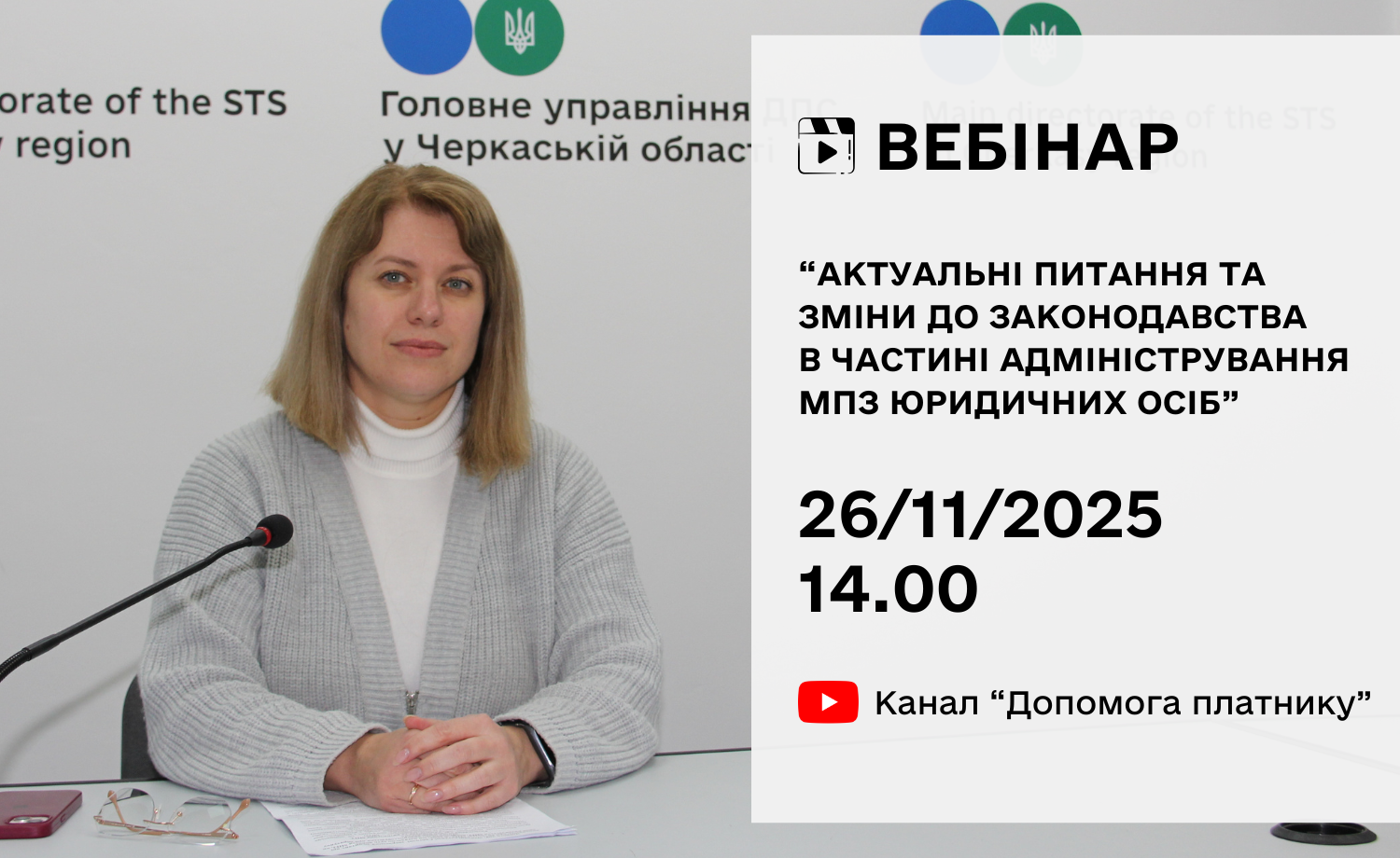 26/11/2025 о 14.00 на ютуб-каналі «Допомога платнику» розглянемо актуальні питання та зміни до законодавства в частині адміністрування МПЗ юридичних осіб.