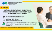Анонс: 20 жовтня - виїзна консультація податкової служби в Чорнобаївській громаді